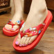 Dép Nữ Quai Lụa Dép Xỏ Ngón Nữ đế Eva GLD001 Kem Lá đỏ