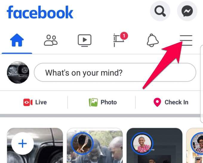 - Nếu bạn đang sử dụng Facebook từ điện thoại thông minh hoặc máy tính bảng của mình để tạo album ảnh thông qua ứng dụng Facebook, hãy nhấn vào menu (ba đường ngang) ở phía trên bên phải của màn hình.
