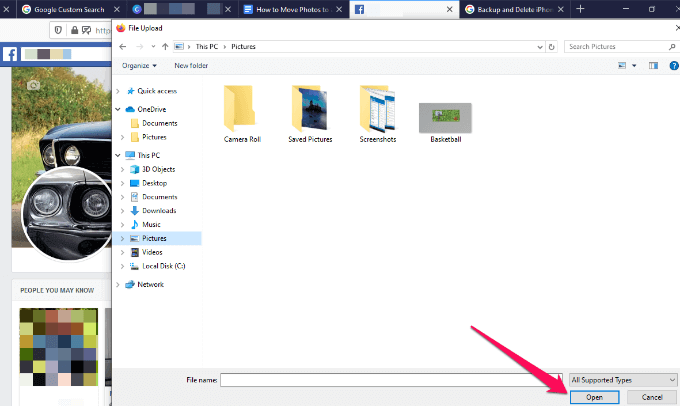 - Chọn ảnh hoặc video bạn muốn thêm vào album của mình, sau đó nhấp vào Mở.