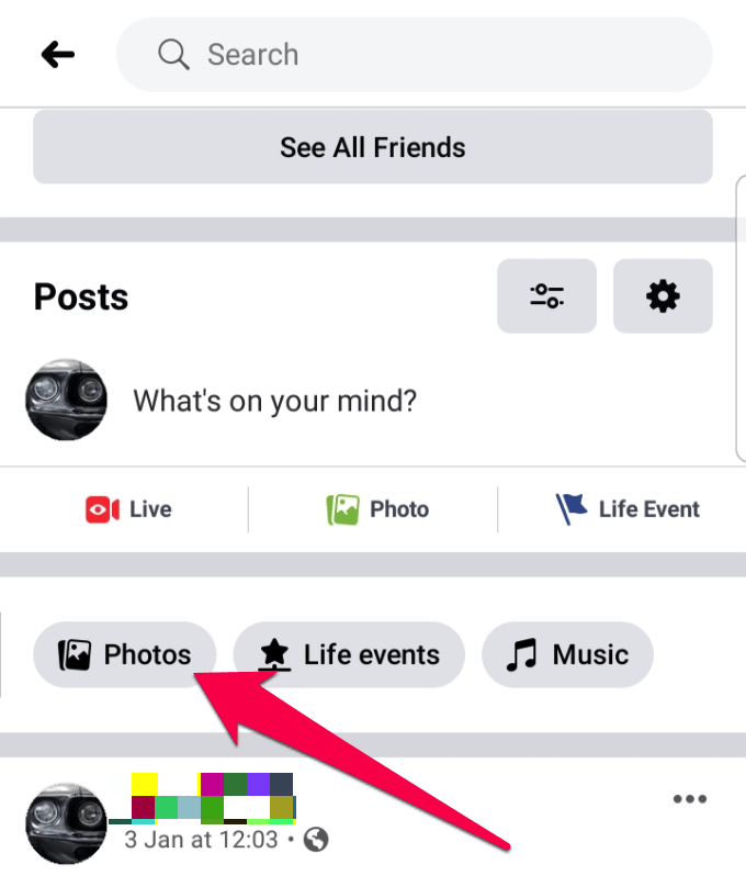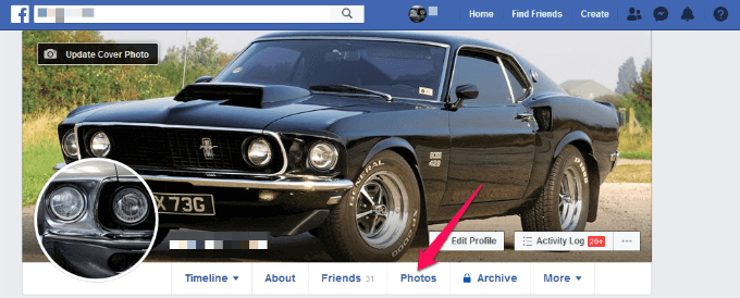 - Để làm điều này, hãy chuyển đến dòng thời gian của bạn và nhấp vào Ảnh dưới ảnh bìa của bạn.
