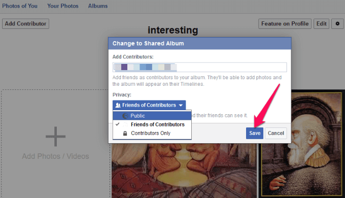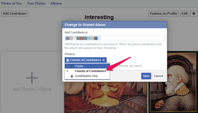 Album được chia sẻ trên Facebook cho phép bạn và gia đình hoặc bạn bè của bạn đóng góp ảnh và các phương tiện khác vào album, vì vậy bạn không có nhiều album cho cùng một thứ.