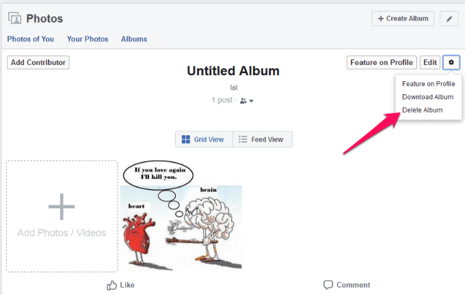 - Nhấp vào biểu tượng bánh răng ở phía trên bên phải, sau đó nhấp vào Xóa Anbom.