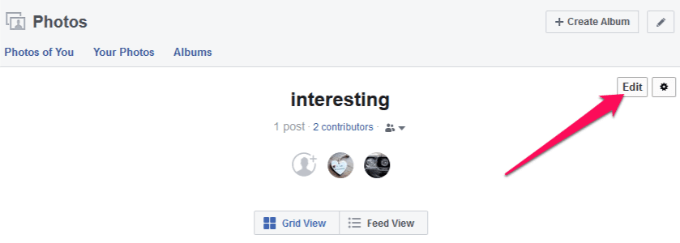 - Nhấp vào album ảnh chứa ảnh / ảnh bạn muốn chuyển sang một album khác. Một trang mới sẽ mở ra hiển thị tất cả ảnh trong album đó. Di chuyển con trỏ qua ảnh hoặc nhấp vào Biên tập ở trên cùng bên phải (bạn có thể nhấp vào biểu tượng bút chì nếu muốn).