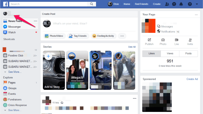 - Để thực hiện việc này, hãy truy cập Bảng tin của bạn và nhấp vào tên của bạn ở phía trên bên trái của màn hình, để mở hồ sơ của bạn.