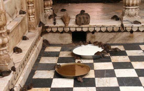 | Ngôi đền Karni Mata có lịch sử 600 năm tuổi là một đền Hindu toạ lạc tại Deshnoke, bang Rajasthan, Ấn Độ và là một trong những nơi lạ lùng nhất trên hành tinh. Chỉ nơi đây con người sống chan hoà, thân ái với hàng ngàn con chuột. Đền Karni Mata nằm ở Deshnok, cách Bikaner khoàng 30 km, thành phố này liên kết với các thành phố khác như New Delhi, Jaipur, Jodhpur và các thành phố quan trọng khác thông qua 1 trong những tuyến đường cao tốc hiện nay của Ấn Độ. Ngôi đền này được xây dựng vào thế kỷ XV nhưng mãi đến năm 1900, nó mới cơ bản hoàn thành |