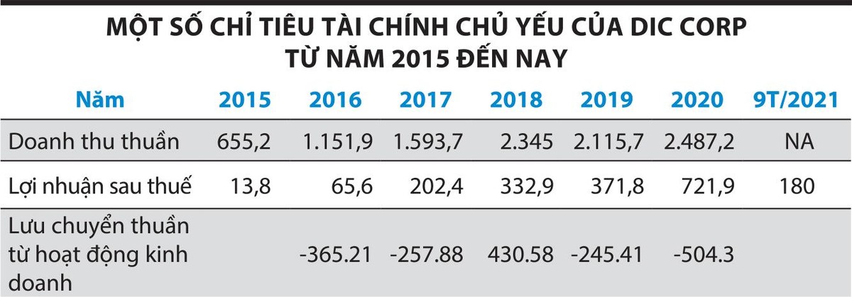 Dòng tiền kinh doanh âm nặng kể từ 2015 trở lại đây một mặt thể hiện việc DIC Corp đang đẩy mạnh hoạt động đầu tư nhằm tận dụng lợi thế từ các quỹ đất sẵn có, nhưng mặt khác cũng đặt ra quan ngại về khả năng tạo tiền từ hoạt động kinh doanh thuần của doanh nghiệp.