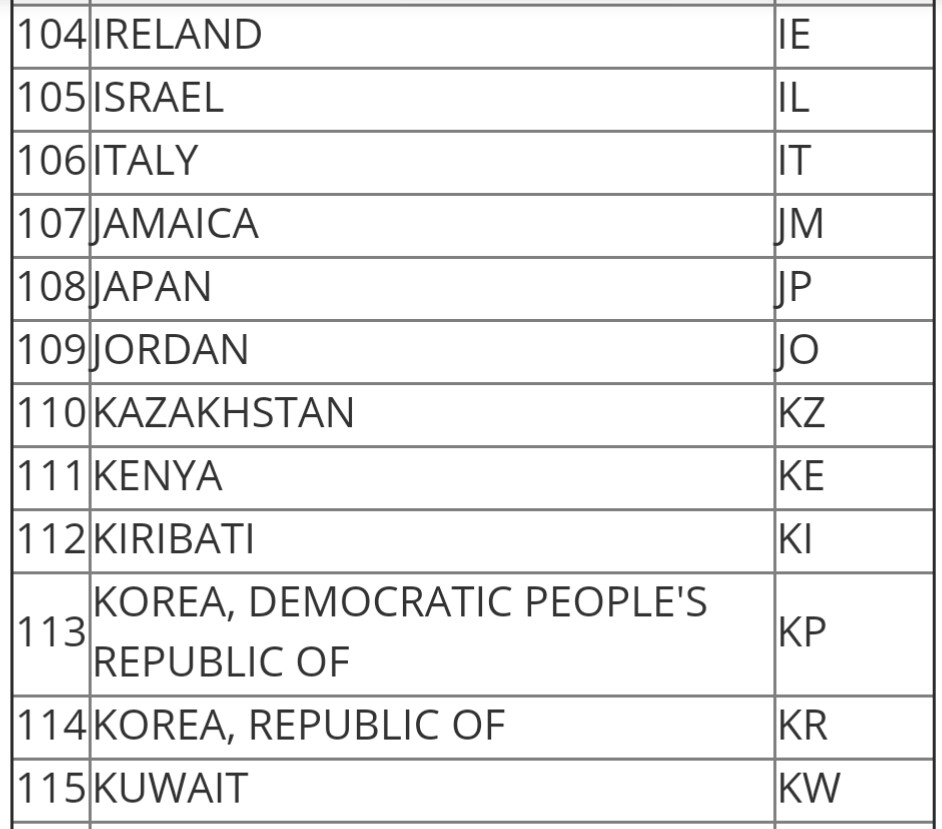 | 235 | VIRGIN ISLANDS, BRITISH | VG |