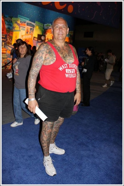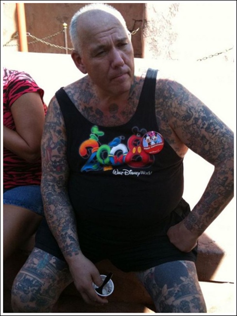Toàn thân là màu da báo.8. Xăm 1.900 hình nhân vật Disney lên cơ thểÔng George Reiger, người Mỹ, đã bao phủ lên 85% cơ thể của mình 1.900 hình xăm Disney. Hình xăm đầu tiên của ông được thực hiện năm 18 tuổi, đó là hình xăm 1 chú chuột Mickey, càng ngày thì số lượng hình xăm càng nhiều lên. George là 1 fan vô cùng cuồng nhiệt của Disney. Hàng năm, George tiêu khoảng 50.000 đô la Mỹ (khoảng 950 triệu đồng) cho niềm đam mê với Disney và ông mong muốn rằng khi chết, tro của ông sẽ được để lại tại Walt Disney World mãi mãi.