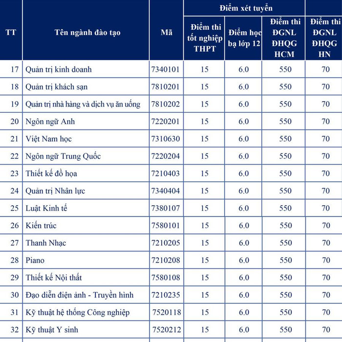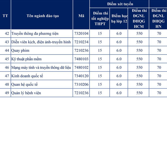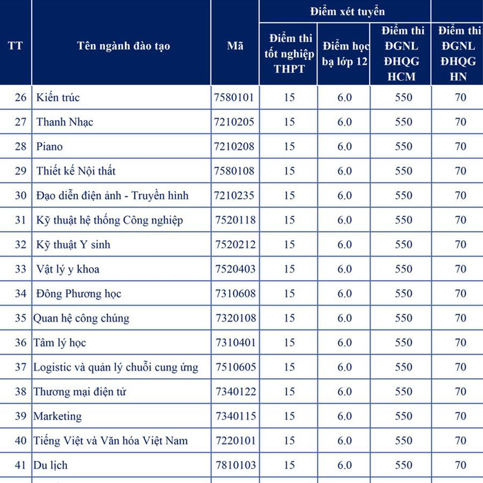 Mức điểm xét tuyển dự kiến cho 49 ngành đào tạo trình độ đại học của Trường Đại học Nguyễn Tất Thành