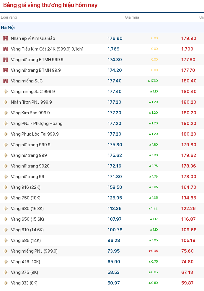 Giá vàng hôm nay