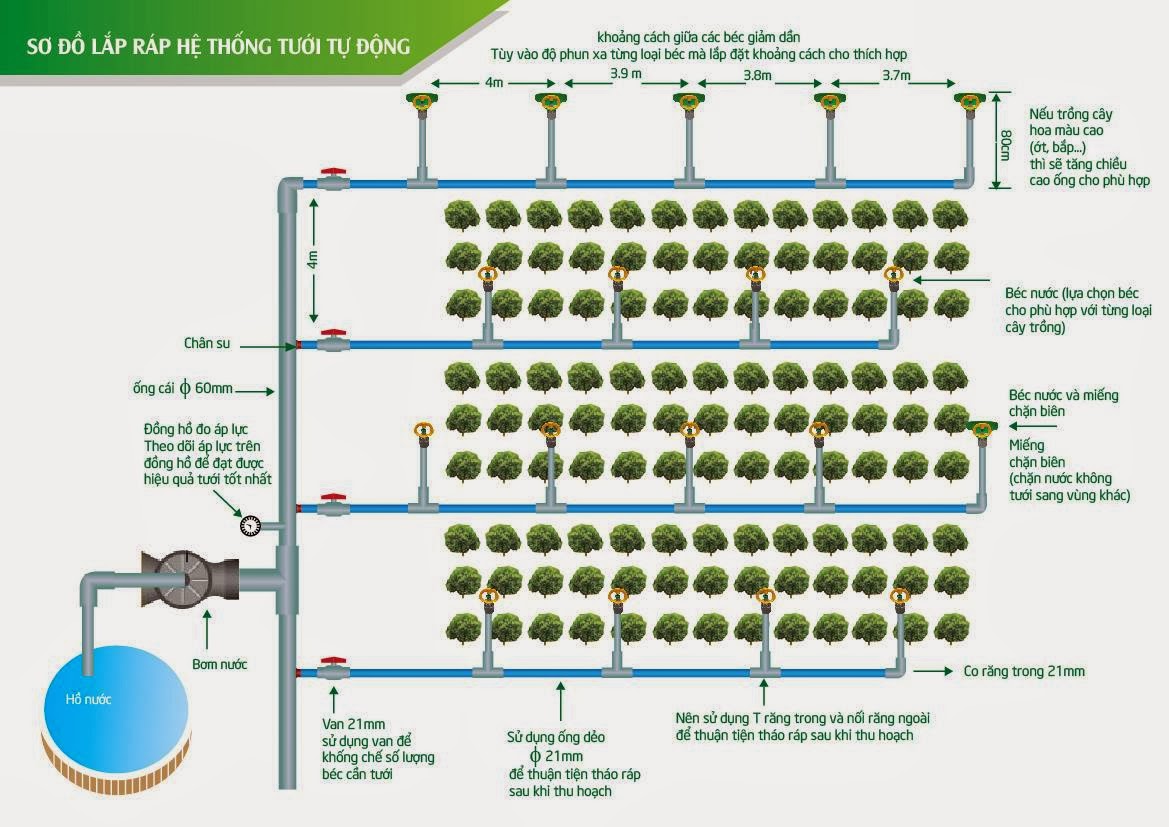| Hệ thống Tưới Cây Tự Động | Béc Phun Sương, Dây, Vật tư, Máy bơm ( thiết kế theo yêu cầu) |