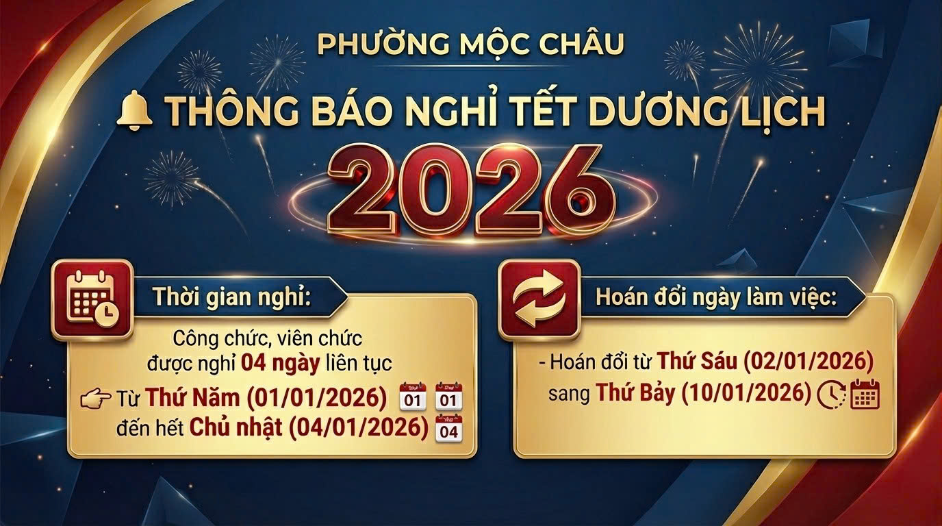 | Thông tin mới nhất THÔNG BÁO Công khai Danh mục thủ tục hành chính và quy trình giải quyết thủ tục hành chính lĩnh vực... HƯỚNG TỚI NGÀY HỘI NON SÔNG – BẦU CỬ LÀ TRÁCH NHIỆM, LÀ NIỀM TIN Sổ tay hướng dẫn tuyên truyền Tổng điều tra kinh tế năm 2026 KỶ NIỆM 80 NĂM NGÀY TỔNG TUYỂN CỬ ĐẦU TIÊN BẦU QUỐC HỘI VIỆT NAM (06/01/1946 – 06/01/2026) KỶ NIỆM 80 NĂM NGÀY TỔNG TUYỂN CỬ ĐẦU TIÊN BẦU QUỐC HỘI VIỆT NAM (06/01/1946 – 06/01/2026) KỶ NIỆM 80 NĂM NGÀY TỔNG TUYỂN CỬ ĐẦU TIÊN BẦU QUỐC HỘI VIỆT NAM (06/01/1946 – 06/01/2026) THÔNG BÁO Công khai Danh mục thủ tục hành chính và quy trình giải quyết thủ tục hành chính lĩnh vực... Phường Mộc Châu tổ chức sinh hoạt chính trị dưới nghi thức chào cờ tháng 1 năm 2026. Mộc Châu chính thức ON TREND mùa đẹp nhất năm Quyết định Phê duyệt chuẩn quốc gia, chỉ định tổ chức giữ chuẩn quốc gia QUYẾT ĐỊNH Phê duyệt phương án bồi thường, hỗ trợ và tái định cư thực hiện dự án Đường trục chính... 10 KẾT QUẢ NỔI BẬT – 1 NIỀM TIN VỮNG BỀN QUYẾT ĐỊNH Phê duyệt phương án bồi thường hỗ trợ và tái định cư đối với các hộ gia đình, cá nhân bị... Thông tư hướng dẫn về quản lý và sử dụng tài nguyên Internet Thông tư Quy định chế độ báo cáo định kỳ thuộc phạm vi quản lý nhà nước của Bộ Khoa học và Công nghệ THÔNG BÁO NGHỈ TẾT DƯƠNG LỊCH 2026 PHƯỜNG MỘC CHÂU CÔNG BỐ CÁC QUYẾT ĐỊNH VỀ CÔNG TÁC CÁN BỘ TẠI TRUNG TÂM PHỤC VỤ HÀNH CHÍNH CÔNG THÔNG BÁO Lịch Tiếp công dân của UBND phường Mộc Châu tháng 1 năm 2026 Quyết định Ban hành phương án tạm thời chấm điểm hàng tháng các bộ, ngành, địa phương, người đứng... Chuẩn bị Khai mạc năm Du lịch 2026 “Mộc Châu – Hẹn ước mùa hoa”. TÌNH NGUYỆN MÙA ĐÔNG 2025 – XUÂN TÌNH NGUYỆN 2026 THÔNG BÁO Tuyển dụng công chức vào làm việc trong các cơ quan hành chính cấp tỉnh, cấp xã tỉnh Sơn... Hướng dẫn cài đặt và sử dụng chữ kí số Lợi ích chữ kí số cho người dân CÁC CHÍNH SÁCH MỚI CÓ HIỆU LỰC TỪ THÁNG 01/2026 Bản tin điện tử cải cách hành chính số 49/2025, từ ngày 22/12/2025 đến ngày 26/12/2025. PHƯỜNG MỘC CHÂU TUYÊN TRUYỀN CÔNG TÁC GIỚI THIỆU, ỨNG CỬ ĐẠI BIỂU HĐND PHƯỜNG NHIỆM KỲ 2026 – 2031... TUYÊN TRUYỀN ĐẠI HỘI LẦN THỨ XIV CỦA ĐẢNG QUYẾT ĐỊNH Về việc ban hành Tài liệu hướng dẫn Luật Năng lượng nguyên tử số 94/2025/QH15 Quyết định về việc bãi bỏ một phần Thông tư số 23/2023/TT-BKHCN ngày 30 tháng 11 năm 2023 của Bộ... QUYẾT ĐỊNH Thành lập các Ban bầu cử đại biểu HĐND phường Mộc Châu, nhiệm kỳ 2026-2031 Trung tâm Dịch vụ tổng hợp phường Mộc Châu dành 5 giải thưởng tại cuộc thi du lịch Sơn La năm 2025. Tuyển dụng công chức vào làm việc trong các cơ quan hành chính cấp tỉnh, cấp xã tỉnh Sơn La năm... QUYẾT ĐỊNH Về việc công bố Danh mục và phê duyệt Quy trình nội bộ giải quyết thủ tục hành chính mới... PHƯỜNG MỘC CHÂU THAM DỰ HỘI THẢO KHOA HỌC TẠI HỌC VIỆN CHÍNH TRỊ KHU VỰC I Quyết định Phê duyệt điều chỉnh quy hoạch hạ tầng thông tin và truyền thông thời kỳ 2021 - 2030,... CUỘC BẦU CỬ ĐẠI BIỂU QUỐC HỘI KHÓA XVI VÀ ĐẠI BIỂU HĐND CÁC CẤP NHIỆM KỲ 2026–2031 CHI BỘ CÁC CƠ QUAN UBND PHƯỜNG MỘC CHÂU TỔ CHỨC LỄ KẾT NẠP ĐẢNG VIÊN VÀ TRAO QUYẾT ĐỊNH CÔNG NHẬN... CUỘC BẦU CỬ ĐẠI BIỂU QUỐC HỘI KHÓA XVI VÀ ĐẠI BIỂU HĐND CÁC CẤP NHIỆM KỲ 2026–2031 Tuyên truyền về Nghị quyết số 57 NQ/TW về đột phá phát triển khoa học, công nghệ, đổi mới sáng tạo... QUÁN TRIỆT KẾT LUẬN SỐ 226-KL/TW CỦA BAN BÍ THƯ ĐẢNG ỦY PHƯỜNG MỘC CHÂU TỔ CHỨC ĐIỂM CẦU DỰ HỘI NGHỊ QUÁN TRIỆT CÁC VĂN BẢN MỚI CỦA TRUNG ƯƠNG VÀ... Tuyên truyền về Nghị quyết số 57 NQ/TW về đột phá phát triển khoa học, công nghệ, đổi mới sáng tạo... Bản tin điện tử cải cách hành chính số 48/2025, từ ngày15/12/2025 đến ngày 19/12/2025. Hơn 400 người nghèo và đối tượng chính sách phường Mộc Châu được khám bệnh miễn phí. Luật Công nghiệp công nghệ số QUYẾT ĐỊNH Về việc công bố Danh mục thủ tục hành chính mới ban hành và bị bãi bỏ; phê duyệt Quy... Thông tư số 34/2025/TT-BKHCN quy định về sản phẩm, dịch vụ công nghệ số được hưởng ưu đãi về lựa... Bản tin điện tử cải cách hành chính số 47/2025, từ ngày 08/12/2025 đến ngày 12/12/2025. QUYẾT ĐỊNH Về việc tặng danh hiệu “Gia đình văn hóa” năm 2025 Thống kê truy cập - Đang online: 1