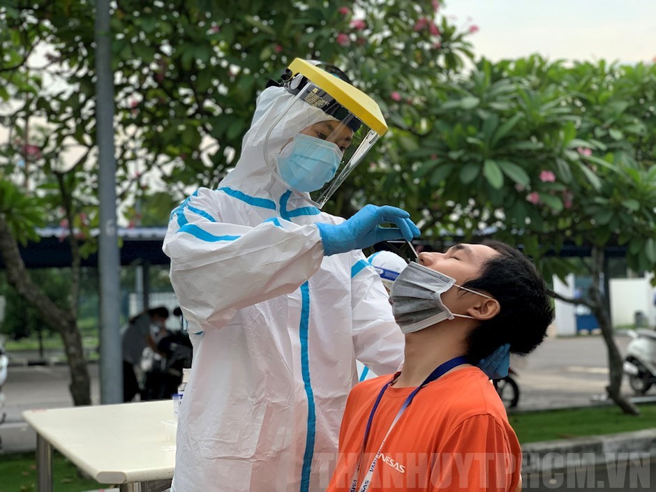 Nhân viên Bệnh viện Da Liễu TPHCM tham gia lấy mẫu tầm soát SARS-CoV-2(Thanhuytphcm.vn) – Những ngày này, các đội lấy mẫu xét Covid-19 cùng các nhân viên y tế nỗ lực làm việc nhằm chung tay tầm soát, phát hiện sớm các ca bệnh. Có những nhân viên y tế, từ đầu mùa dịch liên tục đi lấy mẫu xét nghiệm. Do số lượng mẫu trong cộng đồng cần lấy rất lớn nên có những ngày lấy mẫu đến 12 giờ đêm mới về đến nhà. Có nhân viên y tế chia sẻ, công việc lấy mẫu rất vất vả, có những lúc rất mệt mỏi, khát nước đến đờ đẫn, mồ hôi bên trong áo phòng hộ đọng ướt đẫm. Công việc vất vả nhưng các thành viên đội lấy mẫu luôn giữ tinh thần lạc quan; cố gắng hoàn thành tốt công việc của mình.