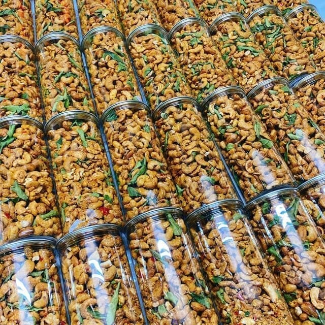 🍀Hạt điều được rang trên lửa than nhỏ đến chín tận trong hạt vị thơm thoang thoảng hoà cùng vị mặn mặn, ngọt ngọt, béo béo cay cay của hạt điều hoà nguyện cùng tỏi ớt với bí quyết gia vị riêng biệt tạo ra 1 hương vị độc quyền khác biệt và dễ gây nghiện