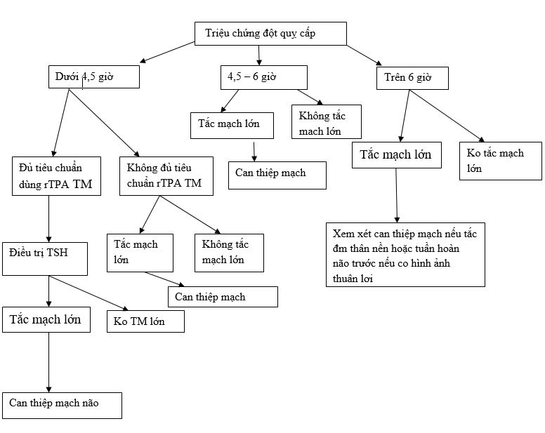 1.3. Thời gian là não. Tương tự như việc điều trị tiêu sợi huyết đường tĩnh mạch bằng rTPA là xác định mốc thời gian tư lức khởi phát đến lúc dùng thuốc. Thời gian lấy huyết khối cơ học cũng là một điều trị tối cấp cứu. Các nghiên cứu đều lấy mốc thời gian là dưới 4,5 giờ là bắt đầu chọc động mạch đùi và thời gian tái thông phải đảm bảo dưới 6 giờ