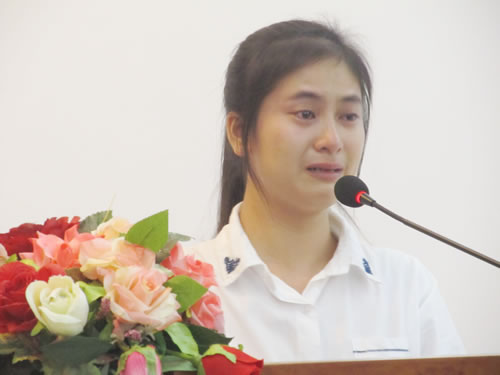 | Nguyễn Thị Ánh Nguyệt rưng rưng xúc động tri ân những tấm lòng hảo tâm. |