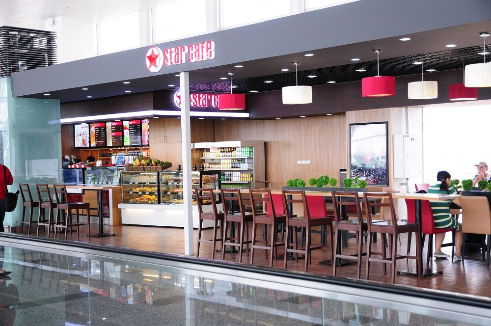 - Quầy Burger King, Star Cafe, Chill, Bigbowl, tầng 1 và tầng 3, sảnh công cộng, Nhà ga hành khách quốc tế.