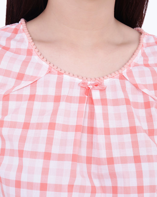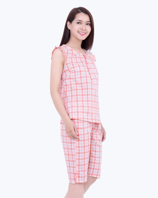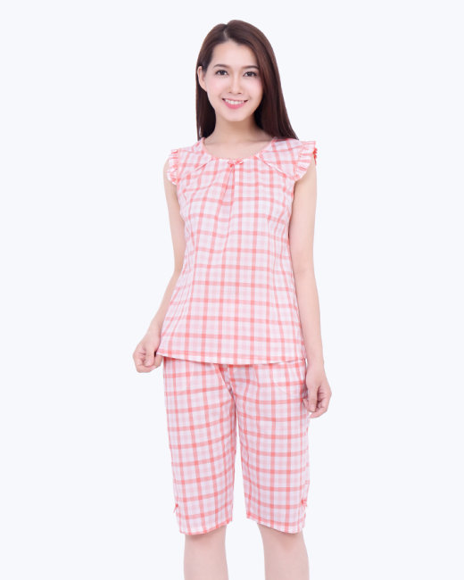 - Kiểu dáng: Set áo cổ tròn, tay bèo, quần lửng lưng thun.