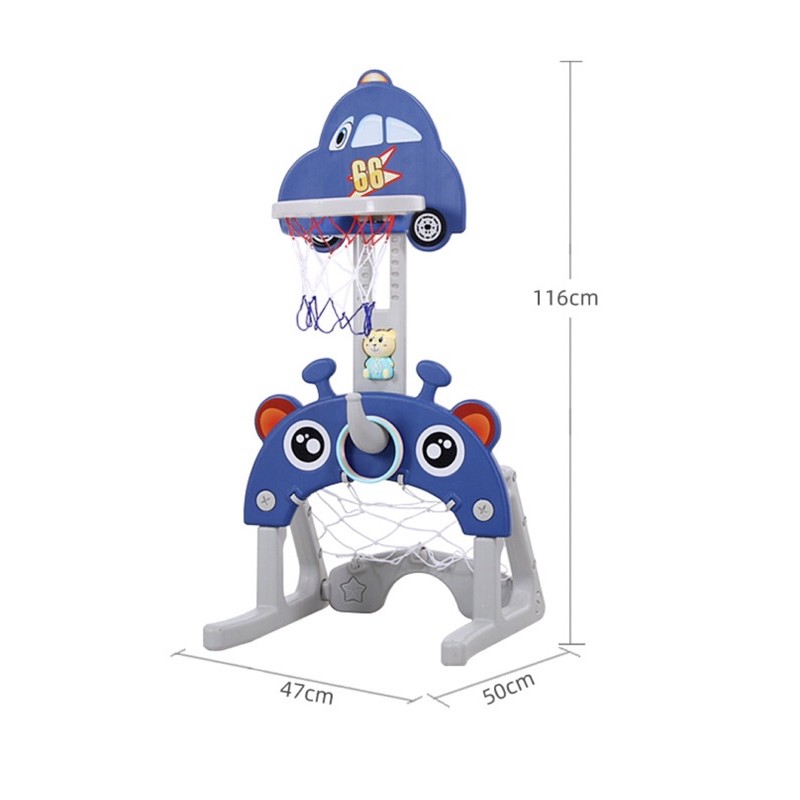 Bộ đồ chơi bóng rổ 5 trong 1 màu xanh nước biển và màu cam- Kích thước mẫu B chiều cao 105 cm đến 155 cm. Có 1 bóng đá + 1 bóng rổ + 4 ném vòng + 1 golf , 1 cảm biến nhạc- Bộ đồ chơi duy nhất vừa kết hợp chơi bóng rổ vừa chơi bóng đá và kèm cả ném vòng- Bộ đồ chơi rất tiện lợi, phù hợp với mọi không gian trong và ngoài nhà cho bé chơi đùa mọi lúc mọi nơi. - Giúp bé rèn luyện sức khỏe và phát triển toàn diện bản thân- Giúp bé nhanh nhẹn và tăng sự khéo léo khi chơi- Bộ đồ chơi có thể giúp cả nhà chơi vui vẻ bên nhau Sản phẩm bao gồm phụ kiện đi kèm: 2 quả bóng, 4 chiếc vò- Sản phẩm làm bằng nhựa ABS chắc chắn và có màu sắc tươi sáng- Sản phẩm nặng 3kg