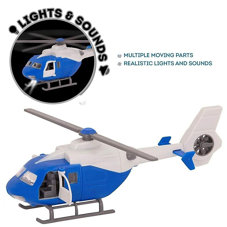 --------------------------------------------------------------️Bao gồm: 1 máy bay trực thăng đồ chơi️Các tính năng: cánh quạt có thể quay, có đèn pha và âm thanh động cơ️Cứng cáp và bền: Đồ chơi Driven được làm từ nhựa đặc biệt cực bền chắc giúp không bị gãy, vỡ khi bé chơi️Thiết kế: Các chi tiết chân thực, đầy màu sắc khuyến khích trí tưởng tượng và kỹ năng nhập vai️Thích hợp cho cả chơi trong nhà và ngoài trời️Kích thước: Trực thăng đồ chơi có kích thước 21 x 8 x 5 cm️Pin: 3 x AG13 đã có sẵn️Độ tuổi khuyến nghị: 3 tuổi trở lên