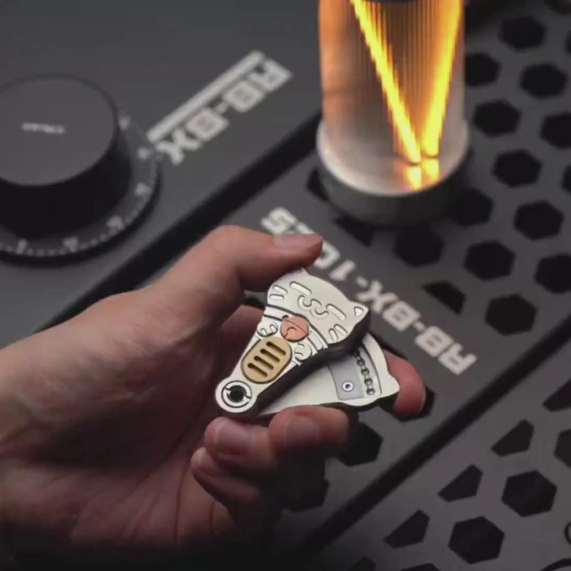 Thẻ Đẩy EDC Xoè Mèo May Mắn by Lino - Thép [Like New]
