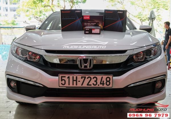 Bi LED pha Aozoom Domax Xled Pro 191209 và bi gầm GTR cho xe Honda Civic 2019 - 2020