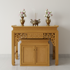 Bàn Thờ Gỗ Sồi 2 Tầng Kèm Tủ Cơm