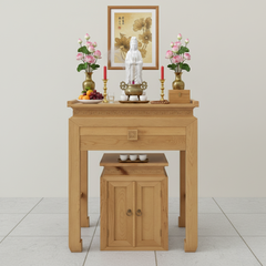 Bàn thờ Quan Âm gỗ sồi kèm tủ - Kích thước nhỏ