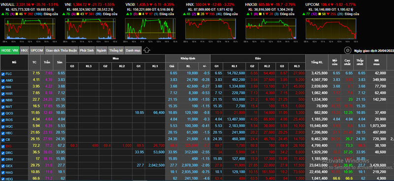 Các nhóm cổ phiếu nóng như “họ FLC”, “họ Louis”, “họ Gelex”, “họ DNP”… và một số cổ phiếu bất động sản, xây dựng vẫn chung một kịch bản giảm sâu, hầu hết giảm sàn với dư bán bằng 0. FLC, ROS, HAI, HQC… dư bán lên tới hàng triệu, thậm chí chục triệu đơn vị.