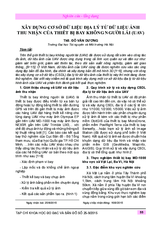 Angelo AdamodownloadDownload free PDFXây dựng cơ sở dữ liệu địa lý từ dữ liệu ảnh thu nhận của thiết bị bay không người lái (UAV)