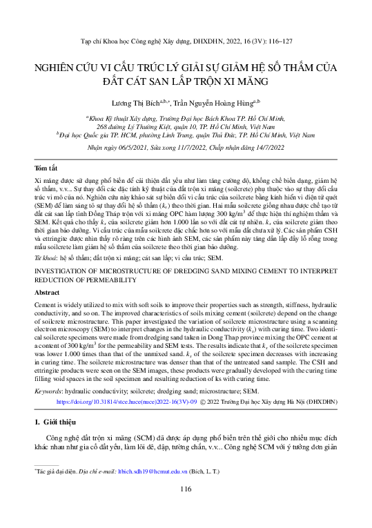 Minh Châu NguyễndownloadDownload free PDFNghiên cứu vi cấu trúc lý giải sự giảm hệ số thấm của đất cát san lấp trộn xi măng