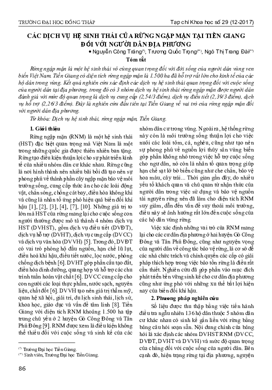 Siti MuyanadownloadDownload free PDFCác dịch vụ hệ sinh thái của rừng ngập mặn tại Tiền Giang đối với người dân địa phương