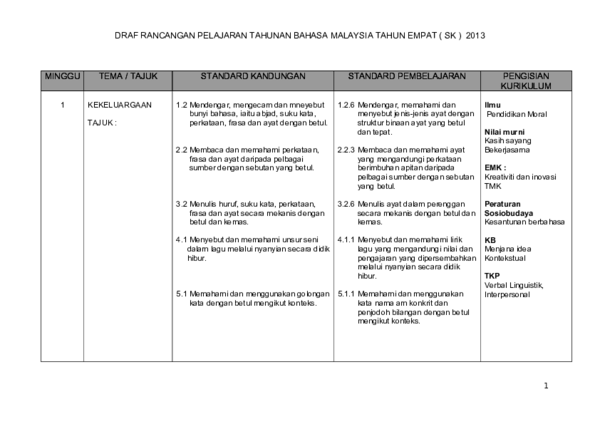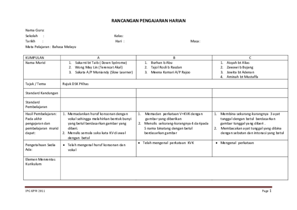 RPH BAHASA MELAYU TAHUN 1 - 6 : KSSR Semakan - FLIP.MY
