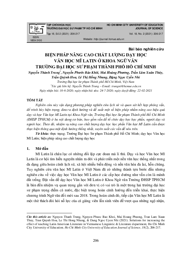 Biện Pháp Nâng Cao Chất Lượng Dạy Học Văn Học Mĩ Latin Ở Khoa Ngữ Văn Trường Đại Học Sư Phạm Thành Phố Hồ Chí Minh