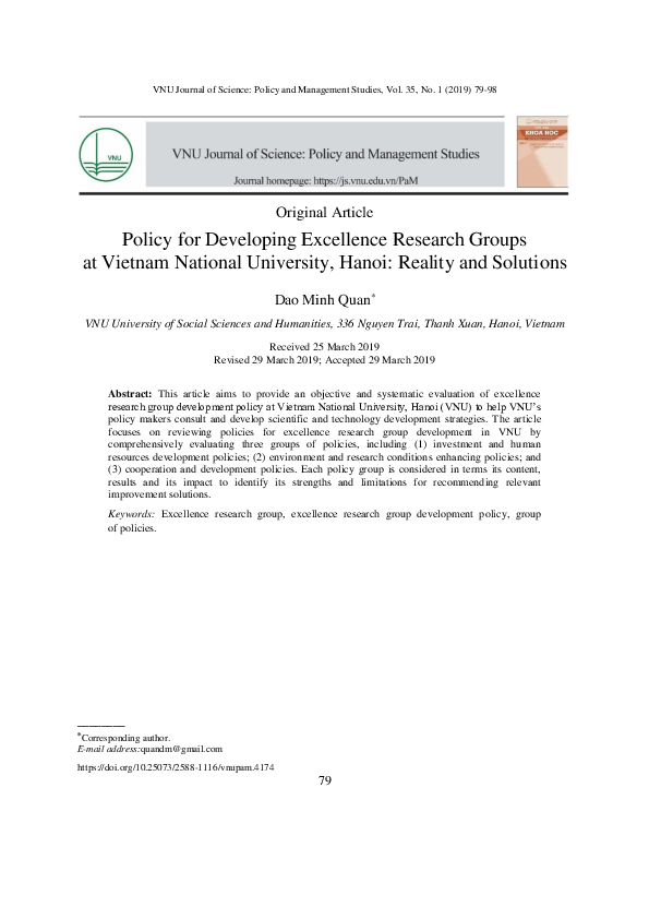 Belén JerezdownloadDownload free PDFPolicy for Developing Excellence Research Group in Vietnam National University, Hanoi: Reality and Solutions