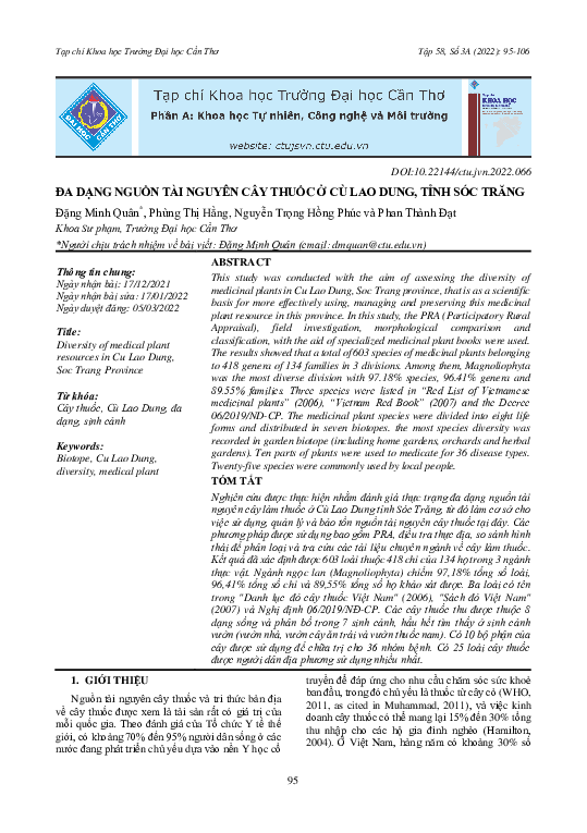 TIÊN LÊ PHẠM THỦYdownloadDownload free PDFĐa dạng nguồn tài nguyên cây thuốc ở Cù Lao Dung, tỉnh Sóc Trăng