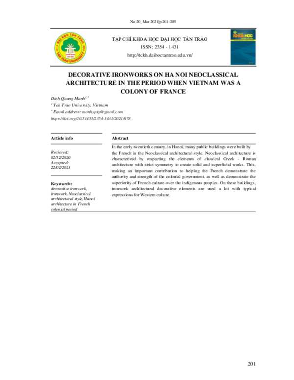 Khánh huyền LêdownloadDownload free PDFTrang Trí Kim Loại Trên Kiến Trúc Phong Cách Tân Cổ Điển Tại Hà Nội Thời Pháp Thuộc