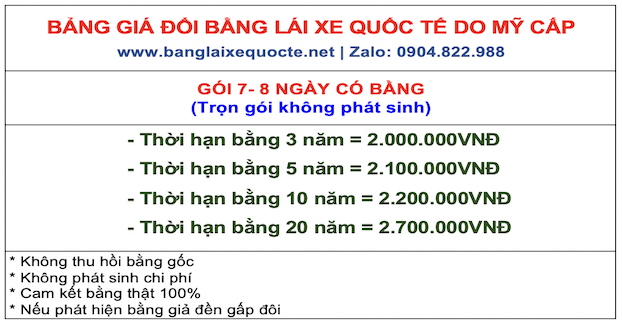 * BBcom Việt Nam cam kết: > Thủ tục đơn giản, Nhanh, Đảm bảo an toàn, chi phí thấp nhật tại Việt Nam. > Thời gian chuyển đổi bằng lái xe quốc tế siêu tốc chỉ 4 ngày có bằng. Đảm bảo đúng thời gian nhận bằng quý khách hàng đã lựa chọn. > Hạn bằng tối đa lên tới 20 năm. Cam kết bằng thật quý khách có thể trực tiếp kiểm tra bằng thật bằng giả tại http://idl-iaa.com/status > Uy tín và sự hài lòng của quý khách là niềm vui của chúng tôi.
