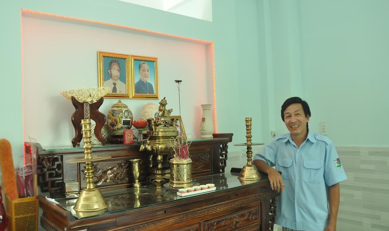 Anh Lộc ở bên bàn thờ gia tộc để chia sẻ hạnh phúc của mình khi nói về việc trúng số