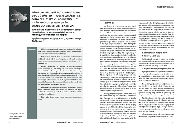arrow_back_iosĐánh Giá Hiệu Quả Bước Đầu Trong Loại Bỏ Các Tổn Thương Vú Lành Tính Bằng Sinh Thiết Vú Có Hỗ Trợ Hút Chân Không Tại Trung Tâm Điện Quang Bệnh Viện Bạch MaiMinh Trí PhạmdownloadDownload free PDFAbstract