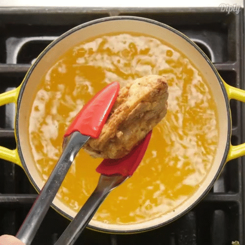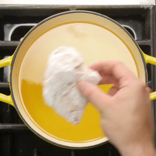 - Giờ thì đợi dầu sôi và thả súp lơ đã tẩm bột vào chiên thôi nào!