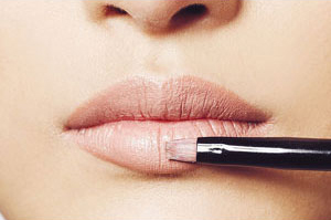 Đánh phấn viền quanh các mép để gom đôi môi nhỏ lại.