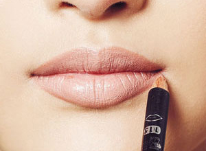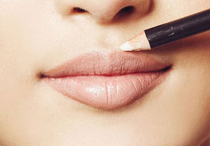 Kẻ viền chì trắng quanh bờ môi, ăn gian vào môi 1 chút xíu.