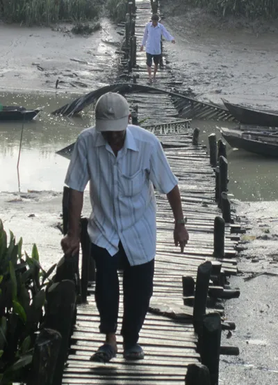 Người dân xóm Gò ngày trước phải đợi nước cạn mới có thể tranh thủ tự qua lại lối dẫn vào đất liền