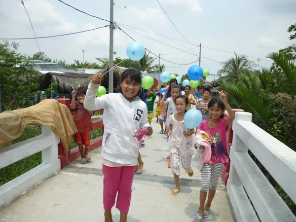 Nhưng từ năm 2013, trẻ em nơi đây có thể tung tăng trên chiếc cầu bê tông vững chãi nối liền xóm Gò với đất liền