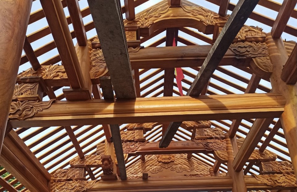 Ông Minh chia sẻ, có những công trình thờ rất đơn giản, chỉ mất tầm 2 tháng để thợ tạo hình và dựng khung. Tuy nhiên, khâu tìm chọn thân gỗ mít để có những cột trụ to đẹp, xà ngang chắc chắn phải mất cả năm trời.