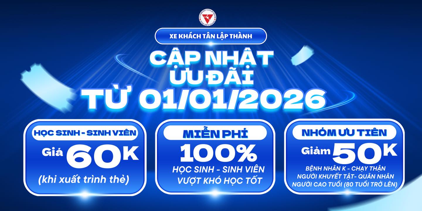 Nhà xe Tân Lập Thành chuyên chạy tuyến Sài Gòn - Mỹ Tho - Chợ Gạo. Cho thuê xe hợp đồng cao cấp