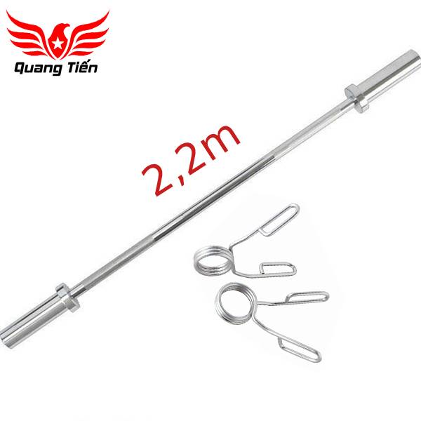 - Đòn gánh tạ 2,2m lắp tạ phi 50 dùng cho phòng Gym được đúc đặc từ chất liệu thép, mạ inox chống rỉ sét + bong tróc và có kẹp giữ tạ ở hai đầu.