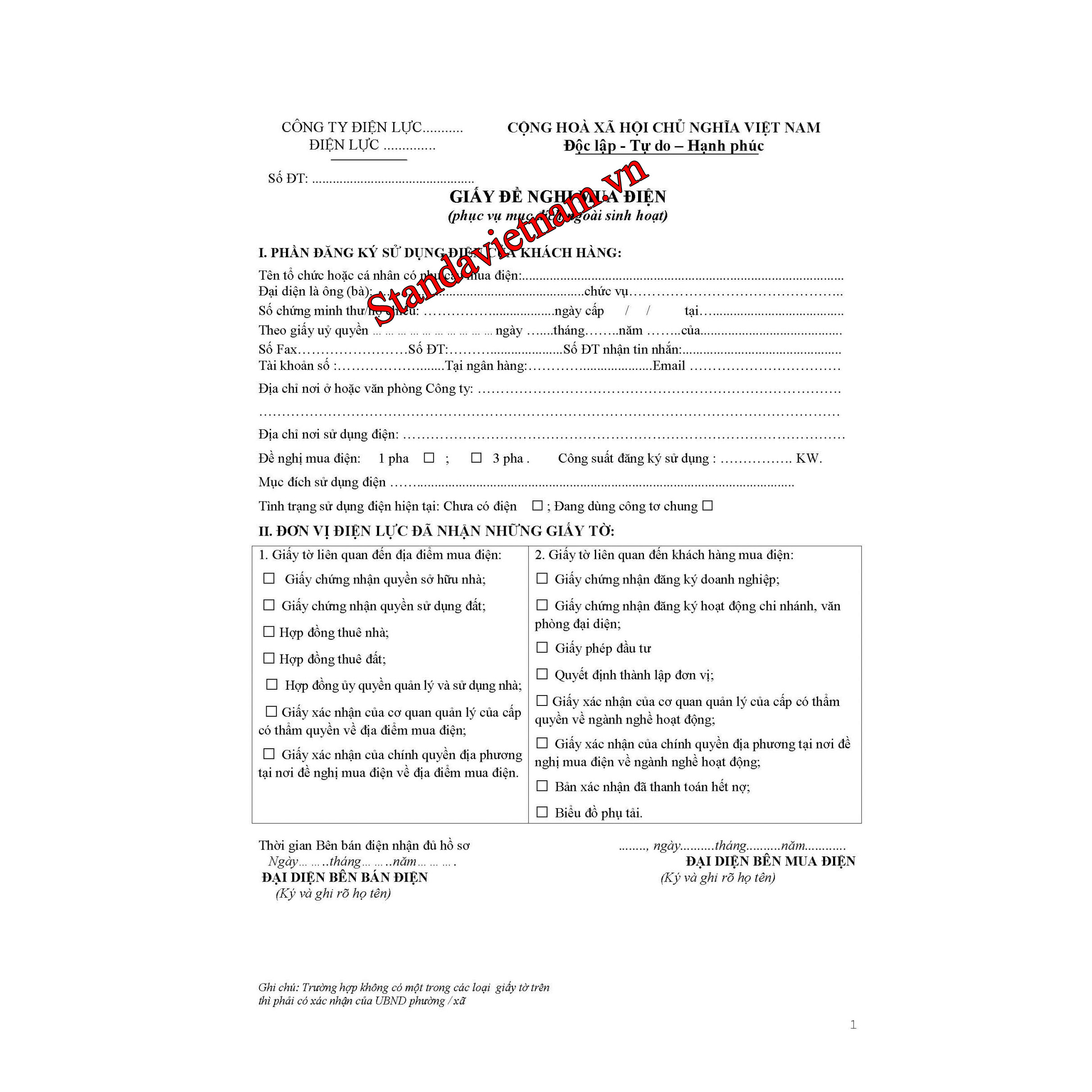Đơn Xin Lắp điện 3 Pha - đơn Xin Lắp Công Tơ điện - 1FIX™