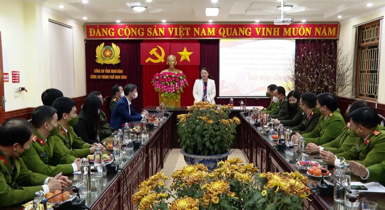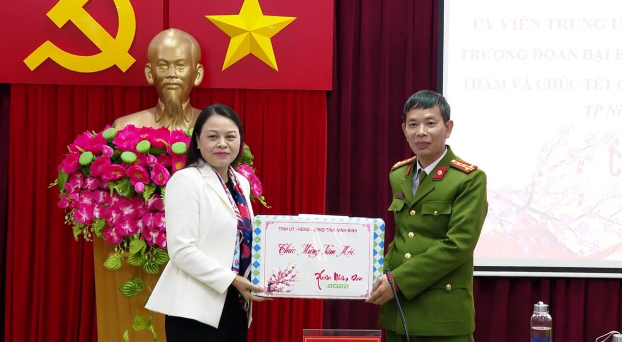 Đồng chí Bí thư Tỉnh ủy tặng quà tết Công an thành phố Ninh BìnhTại các nơi đến thăm, đồng chí Bí thư Tỉnh ủy đã chia sẻ với những khó khăn, vất vả và sự hy sinh, cống hiến của cán bộ, chiến sỹ, khi mà dịp Tết đến, Xuân về mọi người, mọi nhà đoàn tụ bên gia đình thì lực lượng Công an luôn phải trực, sẵn sàng chiến đấu, triển khai đồng bộ các biện pháp nghiệp vụ đảm bảo an toàn về an ninh trật tự, an toàn giao thông, phòng cháy chữa cháy và cứu nạn cứu hộ, có phương án sẵn sàng trước những tình huống, sự cố có thể xảy ra trong thời gian Tết Nguyên đán và các lễ hội Xuân Nhâm Dần. Qua đó, góp phần giữ vững an ninh trật tự, tạo điều kiện để nhân dân vui Xuân, đón Tết an toàn; đảm bảo thích ứng, linh hoạt phòng, chống dịch Covid-19 hiệu quả trong tình hình mới.